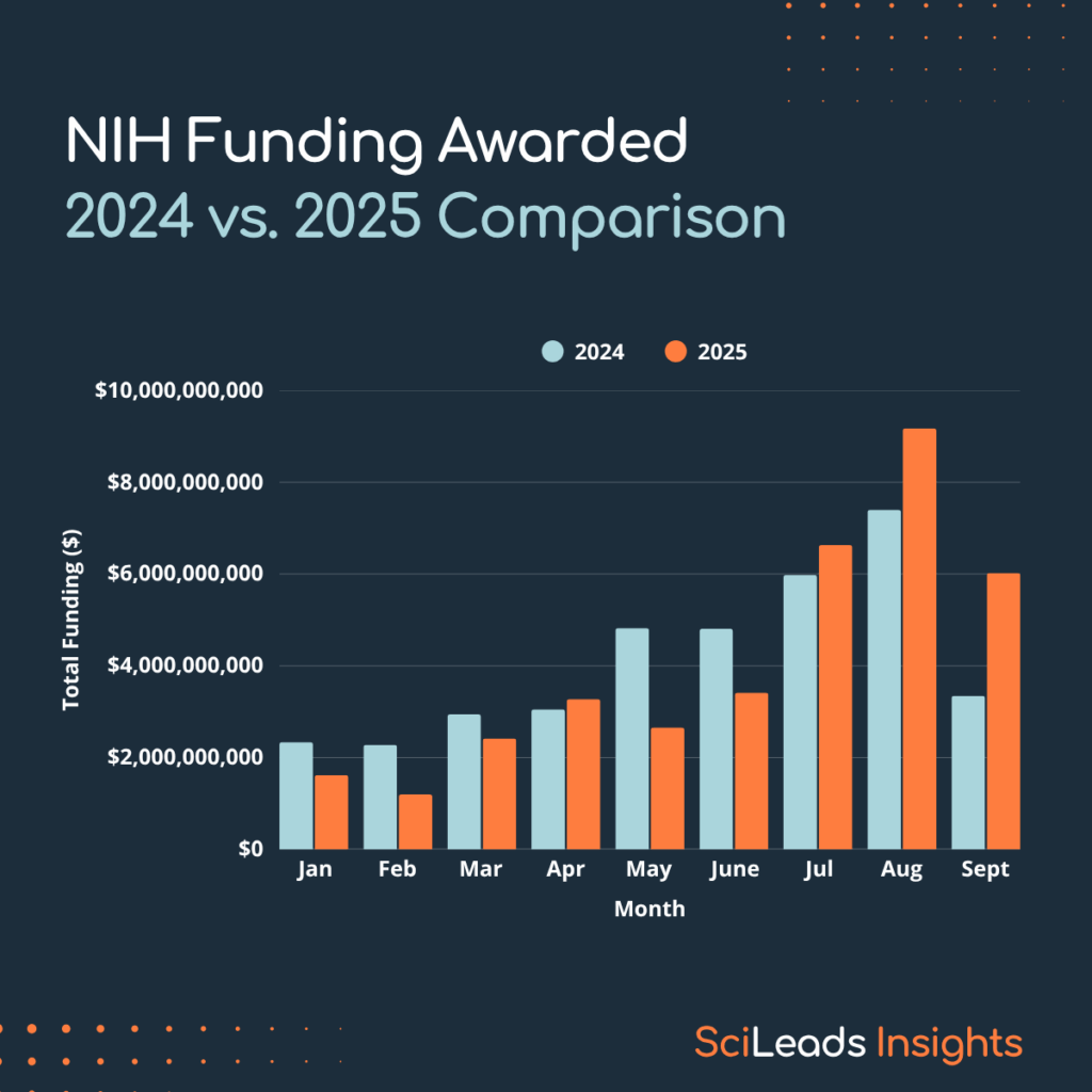 Those of you who had funding alerts set have already taken advantage of this surge in awards. Make sure your SciLeads filters are set to alert you of awarded grants so you can be the first to take advantage of the increase in recent grants, and check out our new Chrome extension, which brings these grant insights directly into your CRM.