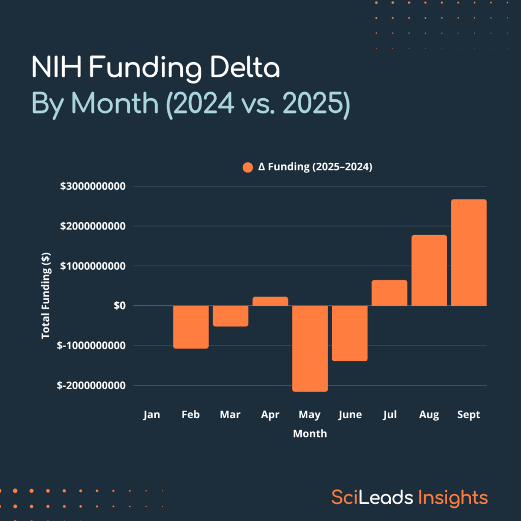 Figure 3: NIH Funding by difference each month between 2023 and 2025