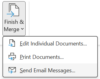 • Click Finish & Merge > Send Email Messages.